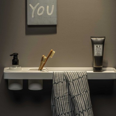 A multifunction shelf that becomes a towel holder or an handhold, but at the same time is a dish for keys or a ledge for your tools. The shelf with a lenght of 45 cm of BRUNT collection is available in mat white, mat black and mat purple grey. The linearity of the project complete and underline the functionality of this design accessory: Brunt has a support on which you can hang the towel, or it can be used as a support in order to facilitate the movements inside the bathroom.