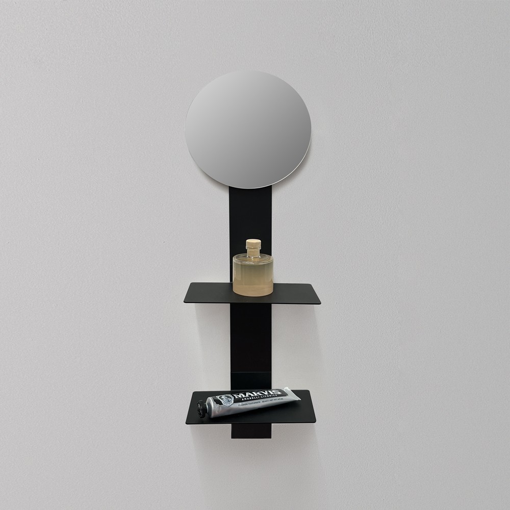 This configuration consists of two shelves and a magnifying mirror and represents the perfect solution for the bathroom and bedroom without drilling into the walls.