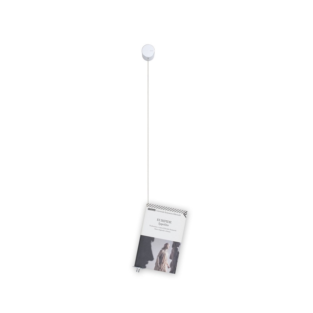 A beautiful magazine hangs out made of a thin steel cable sliding vertically down form a cover wall mounted. Perfect also for small spaces: the magazine hang out needs just a little space to be installed and it is vertical. The cable can be customized, with different lengths. The magazine is fixed at the base with a stopper and a rounded plate made of brass, in order to avoid the fall of the magazine.