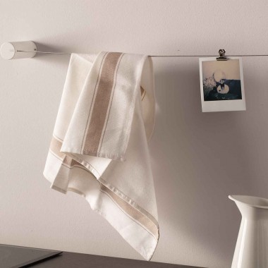 The towel holder of the collection DOT is made of 2 brass covers available in black, white, chrome-plated that you can fix to the wall, and a sliding steel cable. Easy, practical and stylish: its minimal shape is made of dots and lines, perfect to design your bathroom and home with style. The total length of the cable is mm 1100, but you can decide to make a shorter towel holder, and you can put the remaining cable inside the covers, in order to avoid to cut it, in this way, if in the future you would like to change your configuration, you can do it. The use of brass and steel allows it to be a strong and solid element, perfect for humid spaces like the bathroom. Its design adorns and renovates the spaces, with modernity and sobriety. The installation of the towel holder DOT is practical, easy and fast. The design Monica Graffeo expresses all her genius and creativity with this collection: the towel holder DOT in a part of a modular project. In the package there are 2 screws included. To be used in the bathroom and in the kitchen, where it is perfect to be used and a dishes holder.