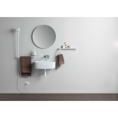 Il portalampada Buck è qui venduto separatamente. Interamente realizzato in allumnio, è disponibile nelle finiture bianco opaco e nero opaco. Come gli altri accessori della collezione, il portalampada Buck può essere fissato allo snodo a forma di croce, permettendo così di essere abbinato ad altri accesori della collezione. Insieme alla mensola può essere posizionato infatti accanto al letto. All'entrata può diventare un portalampada di design per illuminare l'ingresso di casa. In bagno è un elemento indispensabile per illuminare ulteriormente il bagno vicino allo specchio.