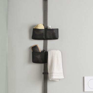 Basket in tessuto tecnico, alto 34 cm per il contenimento di oggetti e di prodotti per la casa e il bagno, provvisto di staffa in alluminio, verniciata colore nero opaco. Il portaoggetti è robusto e si monta con estrema facilità alla fascia TAPE STORAGE. La staffa infatti si infila all'interno delle asole della fascia TAPE. La posizione varia a seconda delle diverse necessità e della combinazione che si vuole creare. Colori disponibili: nero e grigio ghiaccio melange. |